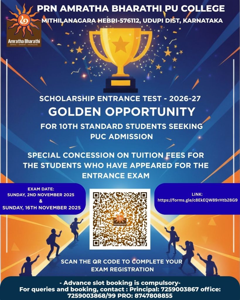 ಅಮೃತ ಭಾರತಿ ವಿದ್ಯಾ ಕೇಂದ್ರ ಹೆಬ್ರಿಯಲ್ಲಿ ದಿನಾಂಕ 10.02.2024, ಶನಿವಾರದಂದು ವಿದ್ಯಾರ್ಥಿಗಳ 2023-24ರ ಸಾಲಿನ ಪ್ರತಿಭಾ ಪುರಸ್ಕಾರ ಕಾರ್ಯಕ್ರಮ ನೆರವೇರಿತು. ಕಾರ್ಯಕ್ರಮದಲ್ಲಿ ಮುಖ್ಯ ಅತಿಥಿಗಳಾಗಿ ಶ್ರೀಮತಿ ವೃಂದ ನಾಯಕ್ ಮತ್ತು ಶ್ರೀಮತಿ ರಾಧಿಕ ಅಡಿಗ, ಸಹಾಯಕ ಇಂಜಿನಿಯರ್, ಮೆಸ್ಕಾಂ, ಹೆಬ್ರಿ ಇವರು ಉಪಸ್ಥಿತರಿದ್ದು ವಿದ್ಯಾರ್ಥಿಗಳನ್ನುದ್ದೇಶಿಸಿ ಮಾತನಾಡುತ್ತಾ, “ವಿದ್ಯಾರ್ಥಿಗಳ ಸರ್ವತೋಮುಖ ಬೆಳವಣಿಗೆಗೆ ಅಮೃತ ಭಾರತಿ ಶ್ರಮಿಸುತ್ತಿರುವುದು ನಿಜಕ್ಕೂ ಹೆಮ್ಮೆ” ಎಂದರು. ವಿವಿಧ ಕ್ರೀಡಾ ಚಟುವಟಿಕೆಗಳಲ್ಲಿ ಹಾಗೂ ಸಾಂಸ್ಕೃತಿಕ ಸ್ಪರ್ಧೆಗಳಲ್ಲಿ ವಿಜೇತರಾದ ವಿದ್ಯಾರ್ಥಿಗಳನ್ನು ಅಭಿನಂದಿಸಲಾಯಿತು.ಕಳೆದ ವರ್ಷ ಸಿಬಿಎಸ್ಸಿ (ಕೇಂದ್ರ ಪಠ್ಯಕ್ರಮ)...
